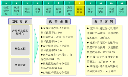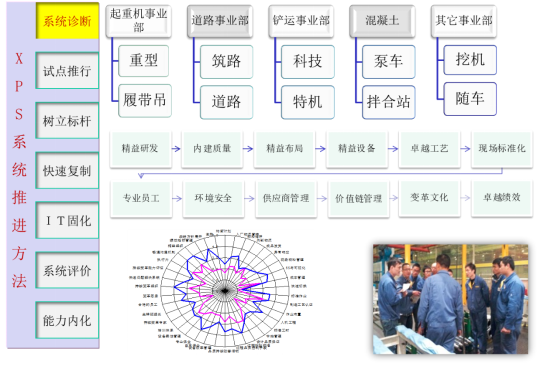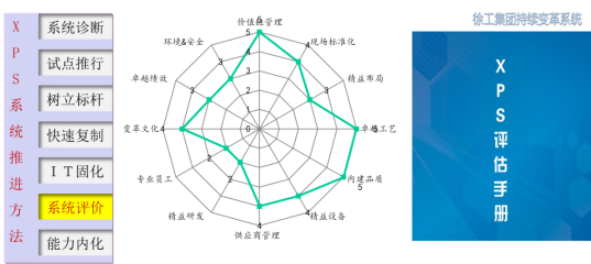 “XPS持續(xù)變革系統(tǒng)”是以集團(tuán)及下屬企業(yè)戰(zhàn)略為導(dǎo)向,結(jié)合企業(yè)運(yùn)營的具體情況,運(yùn)用世界上最行之有效的績效改善工具和方法,幫助企業(yè)建立和完善高效的運(yùn)營系統(tǒng)和模式,使企業(yè)在產(chǎn)品創(chuàng)新、流程創(chuàng)新、人才培養(yǎng)、利潤創(chuàng)新等方面的績效達(dá)到世界領(lǐng)先水平,并形成與企業(yè)自身文化相融合的持續(xù)改善文化,構(gòu)筑企業(yè)的核心競爭力。