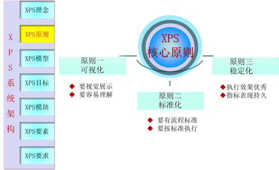 為達(dá)成幫助集團(tuán)成為世界頂級企業(yè)的目標(biāo),XPS以“可視化、標(biāo)準(zhǔn)化、穩(wěn)定化”為指導(dǎo)原則,推進(jìn)A集團(tuán)每個(gè)企業(yè)的運(yùn)營效率的大幅度提升。